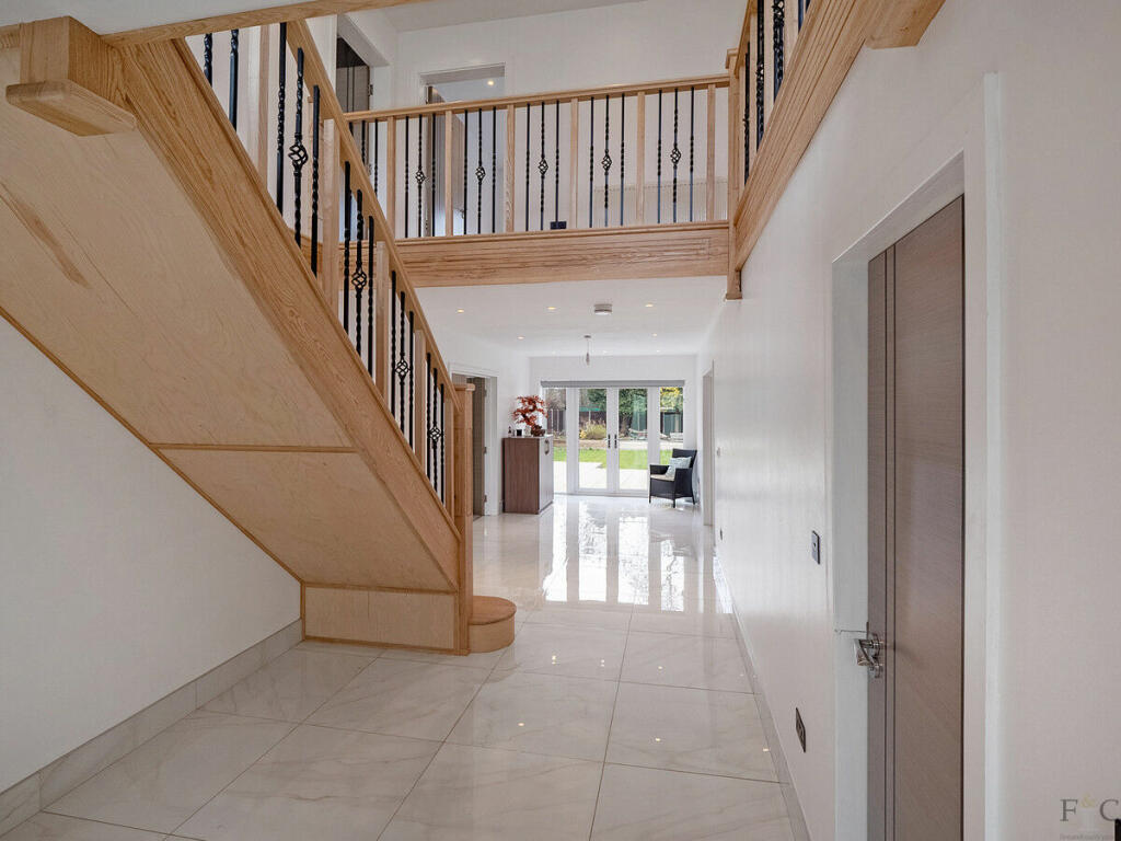 Inside, the design features a grand entrance with statement staircase, views from the front door through to the rear garden, and double-height void with open-plan living space perfect for family life and entertaining, and four generously sized bedrooms. Complementary landscaping completes the property, making it feel like a brand-new home, with all the character of a custom-designed space.